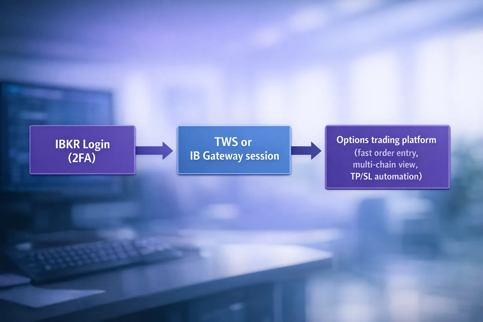 If you use third-party options trading tools that integrate directly with IBKR, the application usually does not replace your IBKR credentials. It connects to TWS or IB Gateway, which must already be running and authenticated.